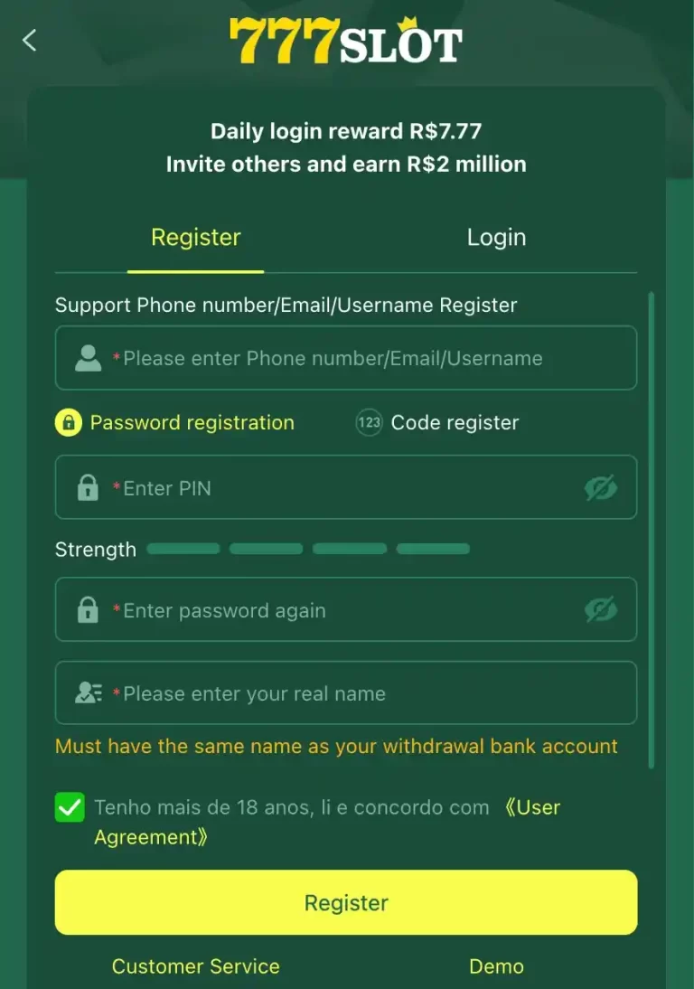 Começar a jogar no universo de apostas do 777SLOT é simples, ágil e totalmente seguro. O processo de registro foi planejado para ser prático e confiável, permitindo que você comece a apostar em instantes.